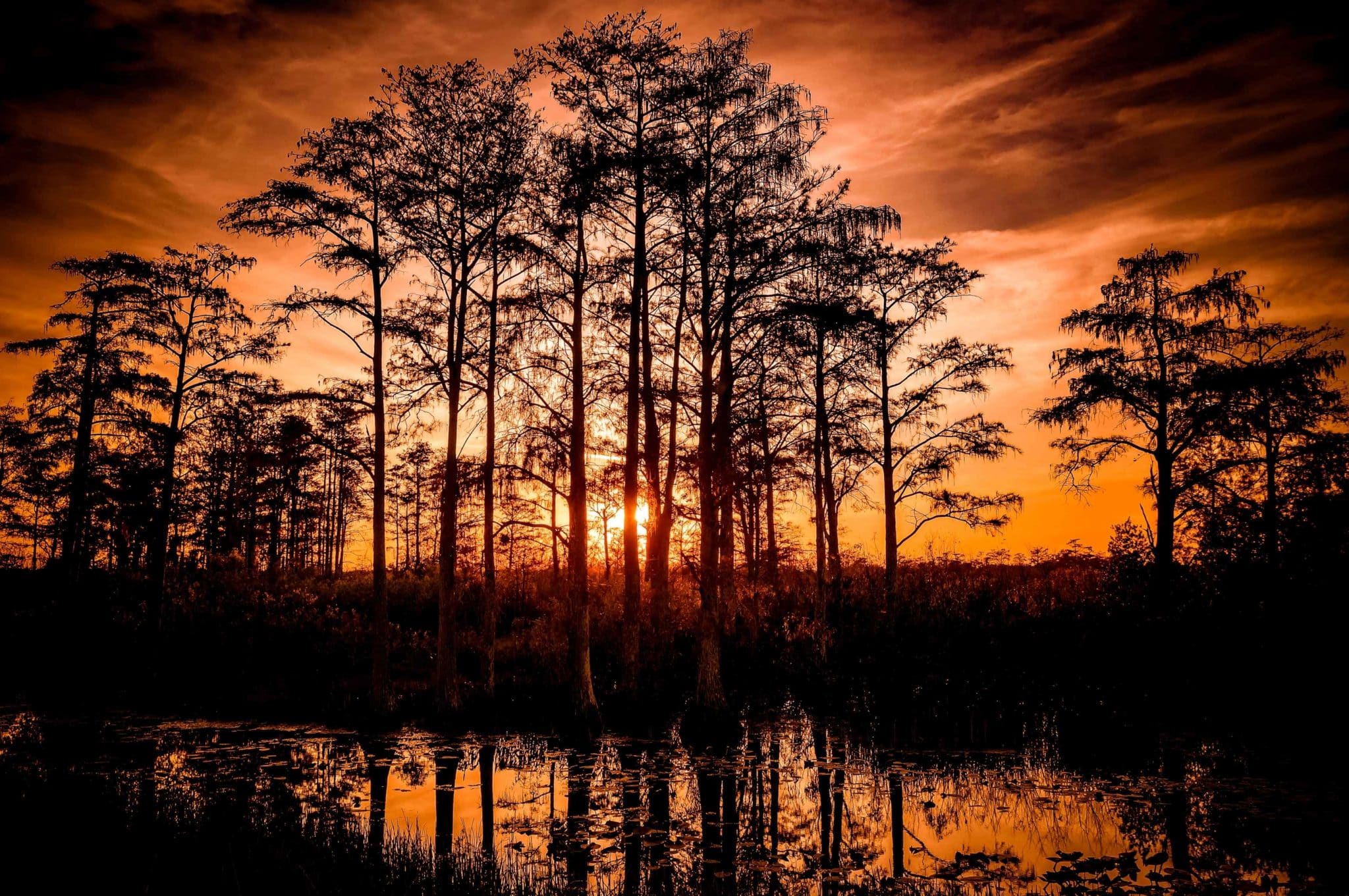 Reflections of a sunset in the Florida Everglades